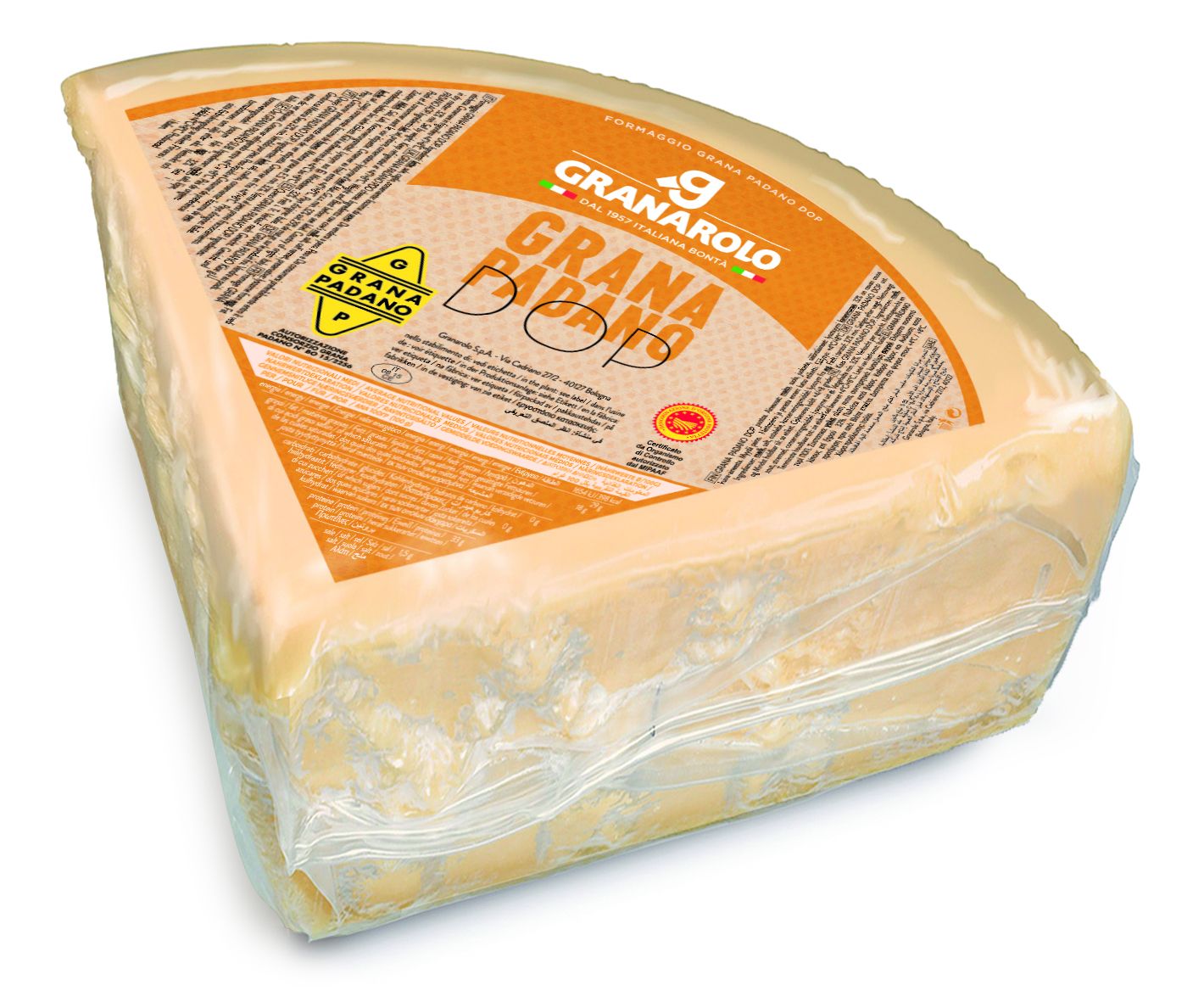 グラナロロ グラナ パダーノ DOP は、ポー渓谷の農場からの牛乳のみを使用して製造されています。
