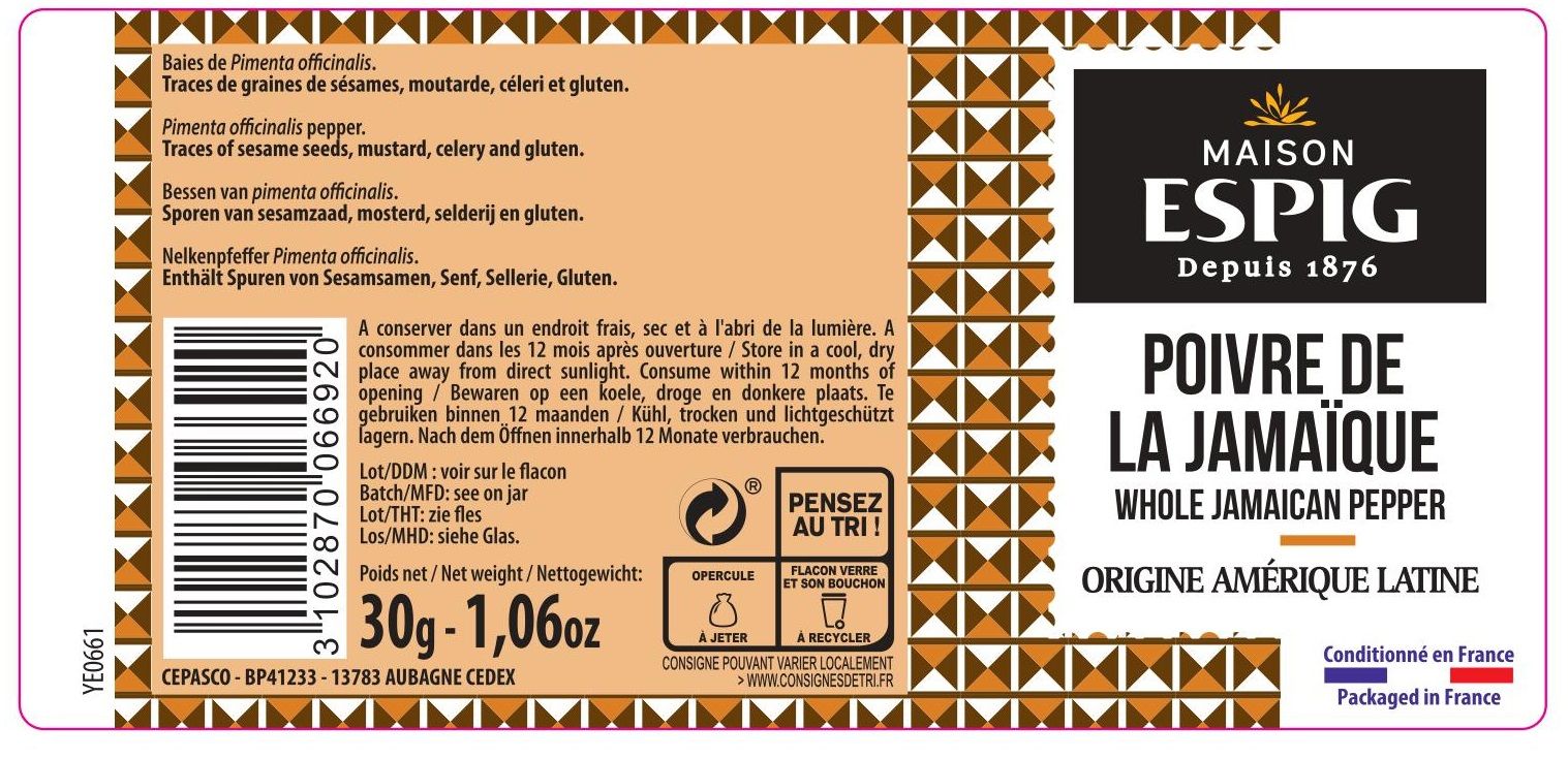 メゾン エスピグ ジャマイカ産 ホールペッパー グラインダー 30g