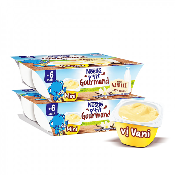 NESTLE P'TIT GOURMAND(ネスレ プチ グルマン)は、赤ちゃんのために特別にデザインされたデザート クリームで、糖分は 30% で、フランスで生産され、私たちの地域の良質なフランスの牛乳を使用しています。