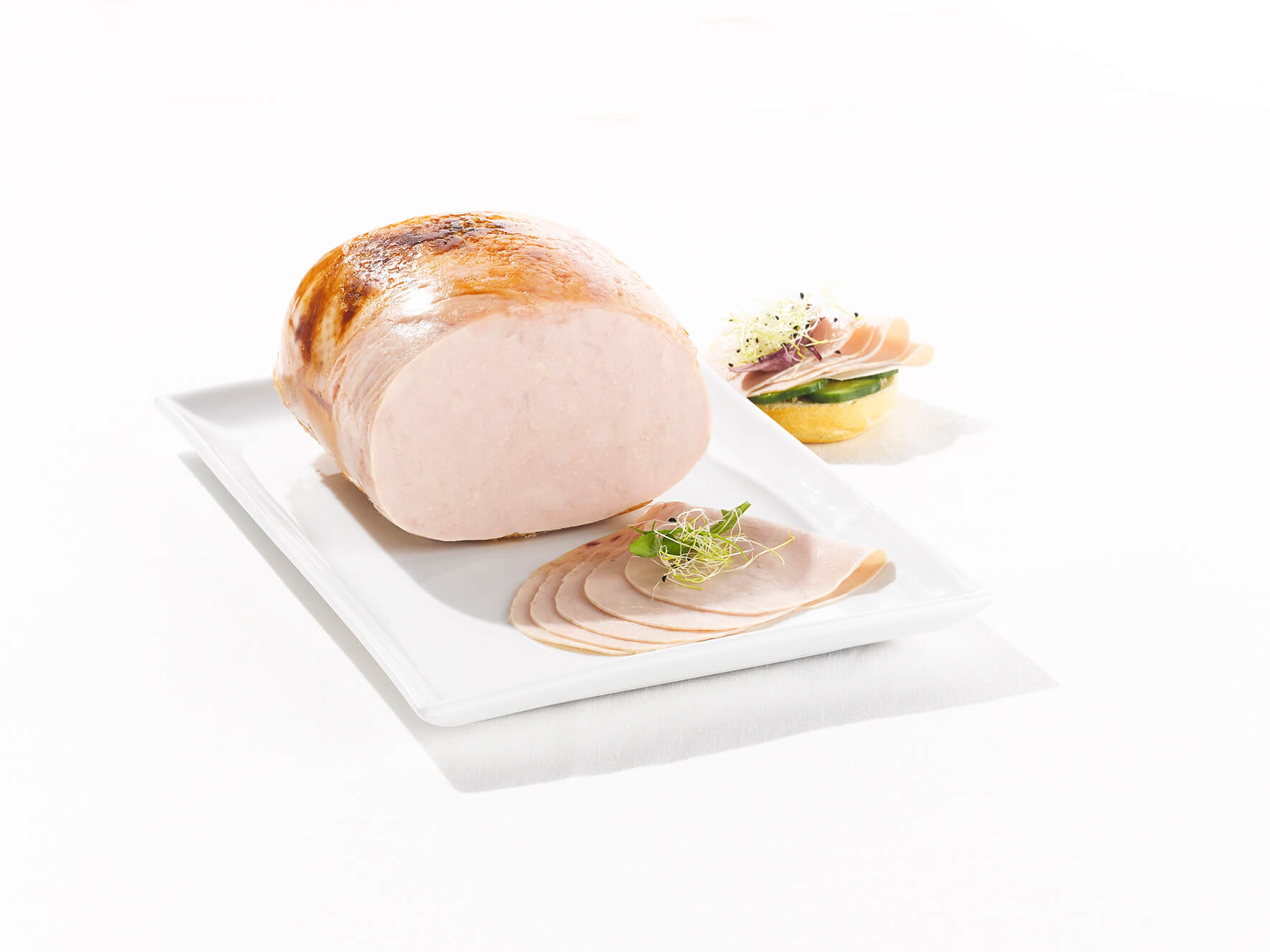 七面鳥の胸肉をマリネしてハムの形に調理し、この調理済みの七面鳥の胸肉を作りました。