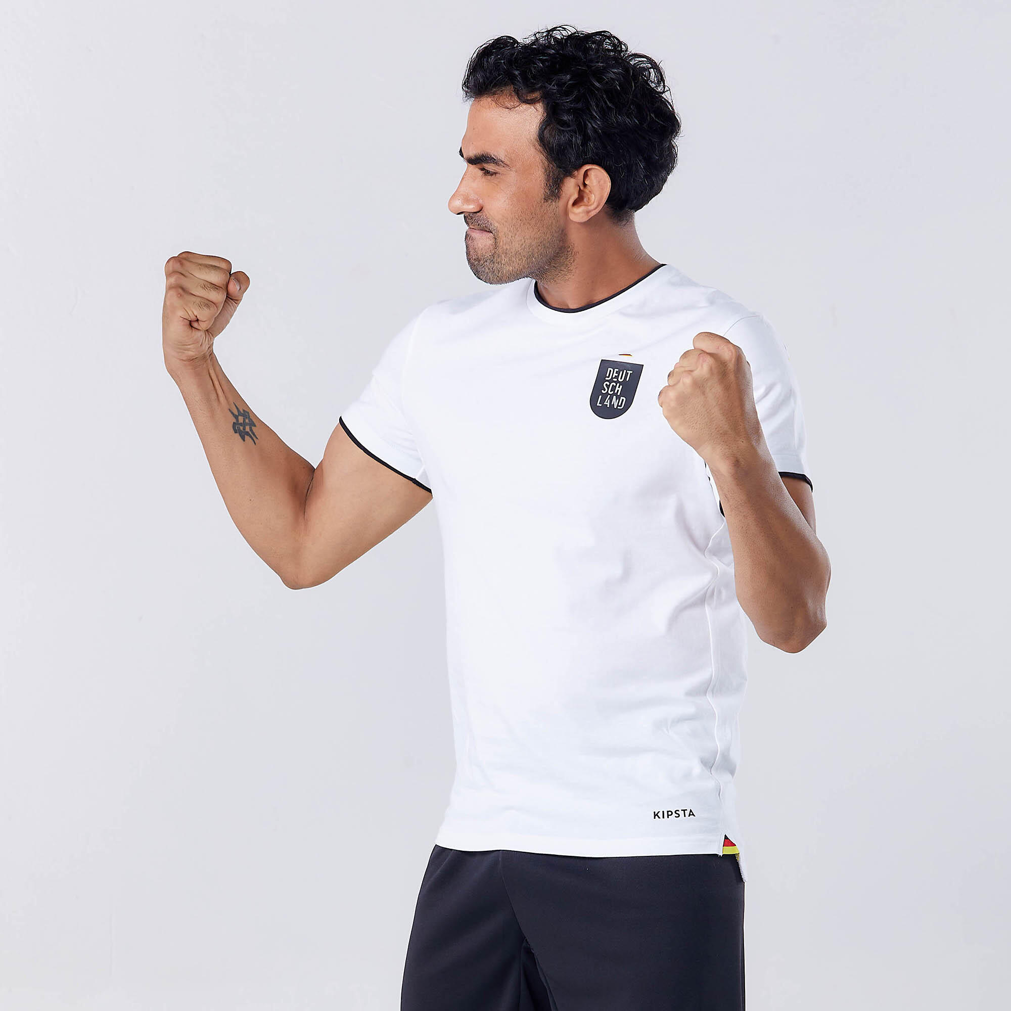どこにいても自分の国とお気に入りのチームの旗を誇らしげに掲げている熱狂的なファンのための T シャツ。誇らしげに国の色とアイドル チームを着て、いつでもどこでもお気に入りのチームをサポートしてください!