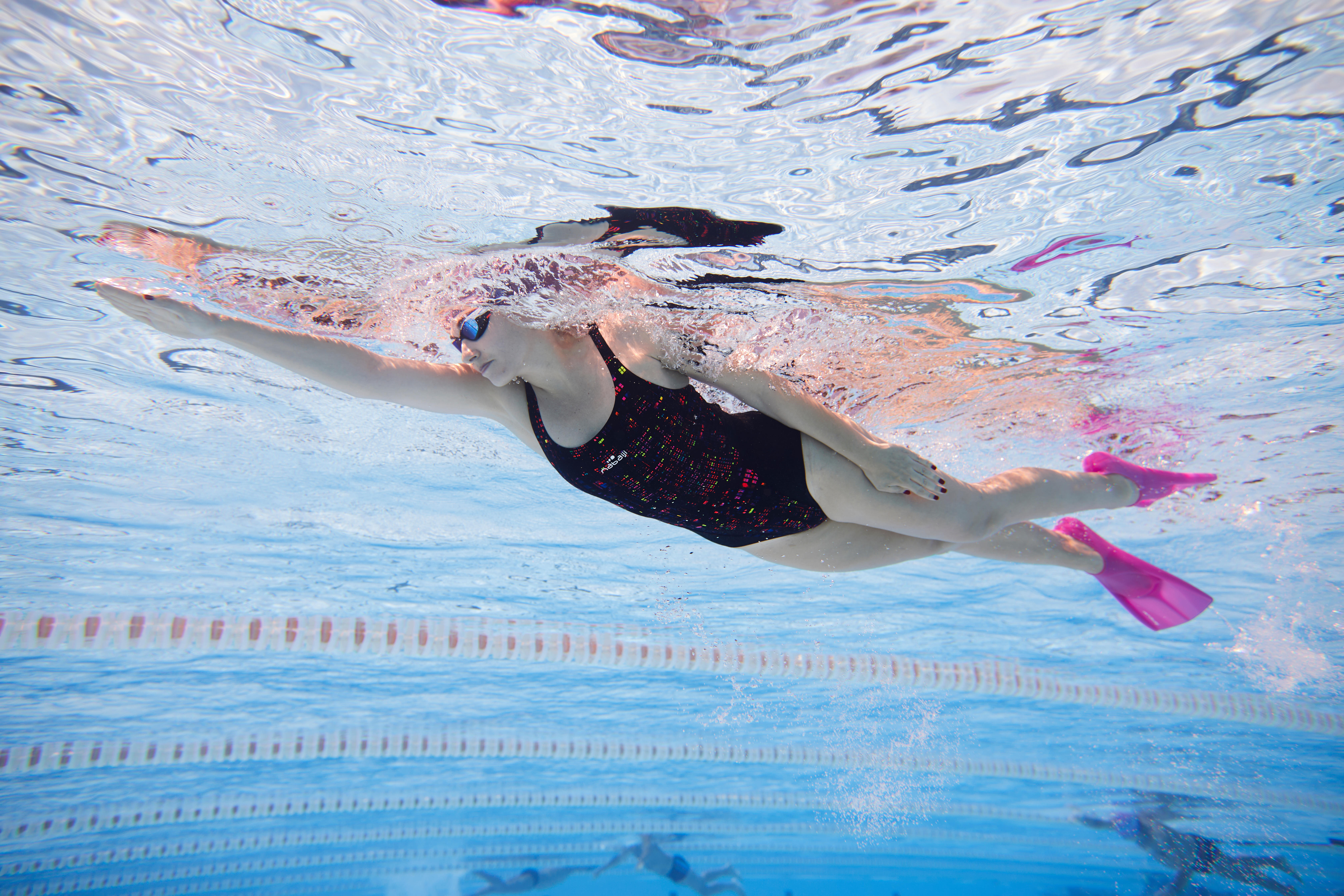 定期的にトレーニングを重ねる中級者向けのワンピース水着。泳ぎを上達させたいですか?このワンピース水着は、幅広のストラップとVバックが特徴です。サポート力と動きやすさを両立しています。