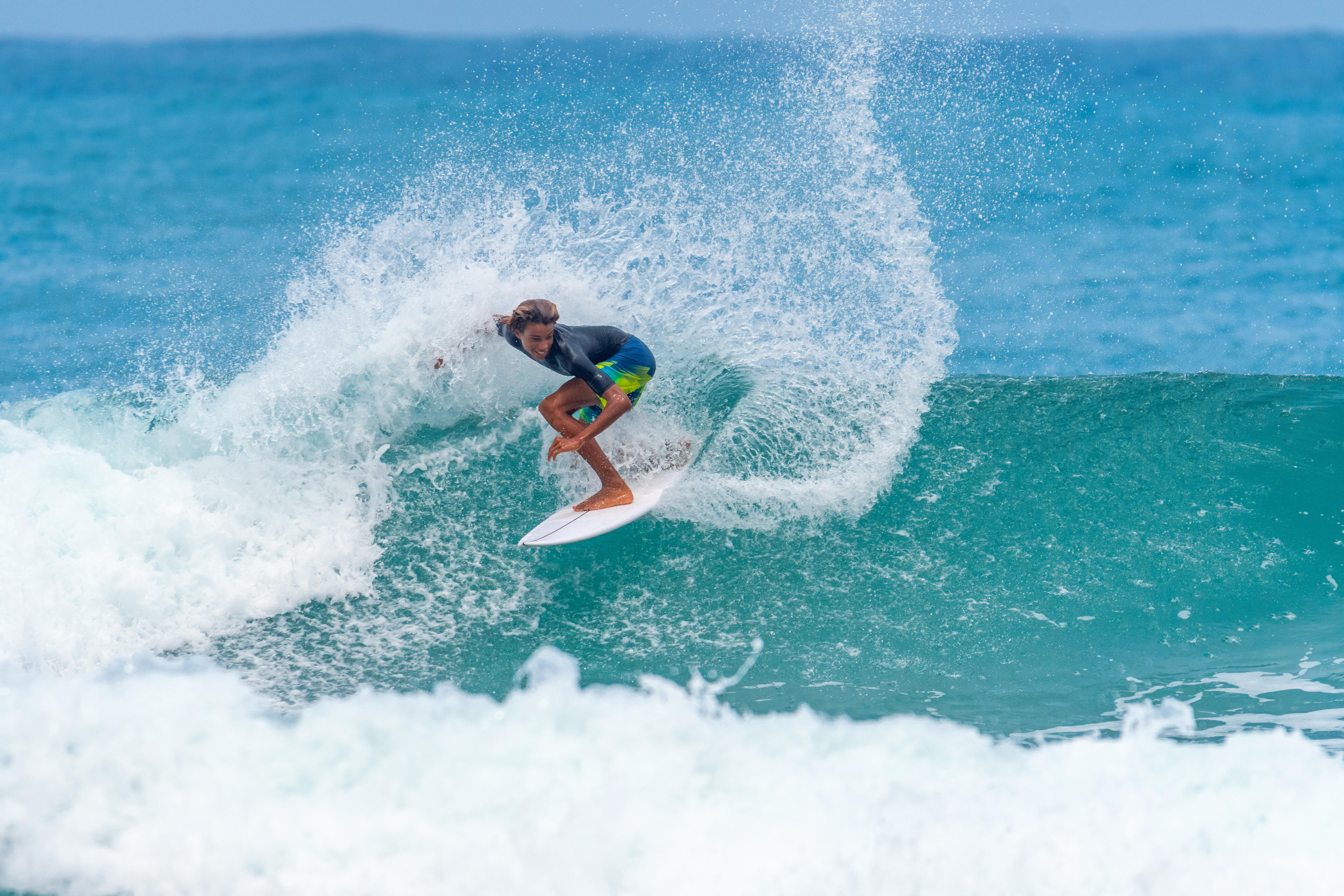 サーフィンやボディーボードをするときに子供たちを太陽から守るためにデザインされた T シャツ。初心者向け。水 > 21°C。子供用 UV カット半袖 T シャツ。水中でも太陽から保護し、刺激を軽減します。ボードとの接触. タイトなフィットにより、シャツが水の中でよりしっかりと固定されます.