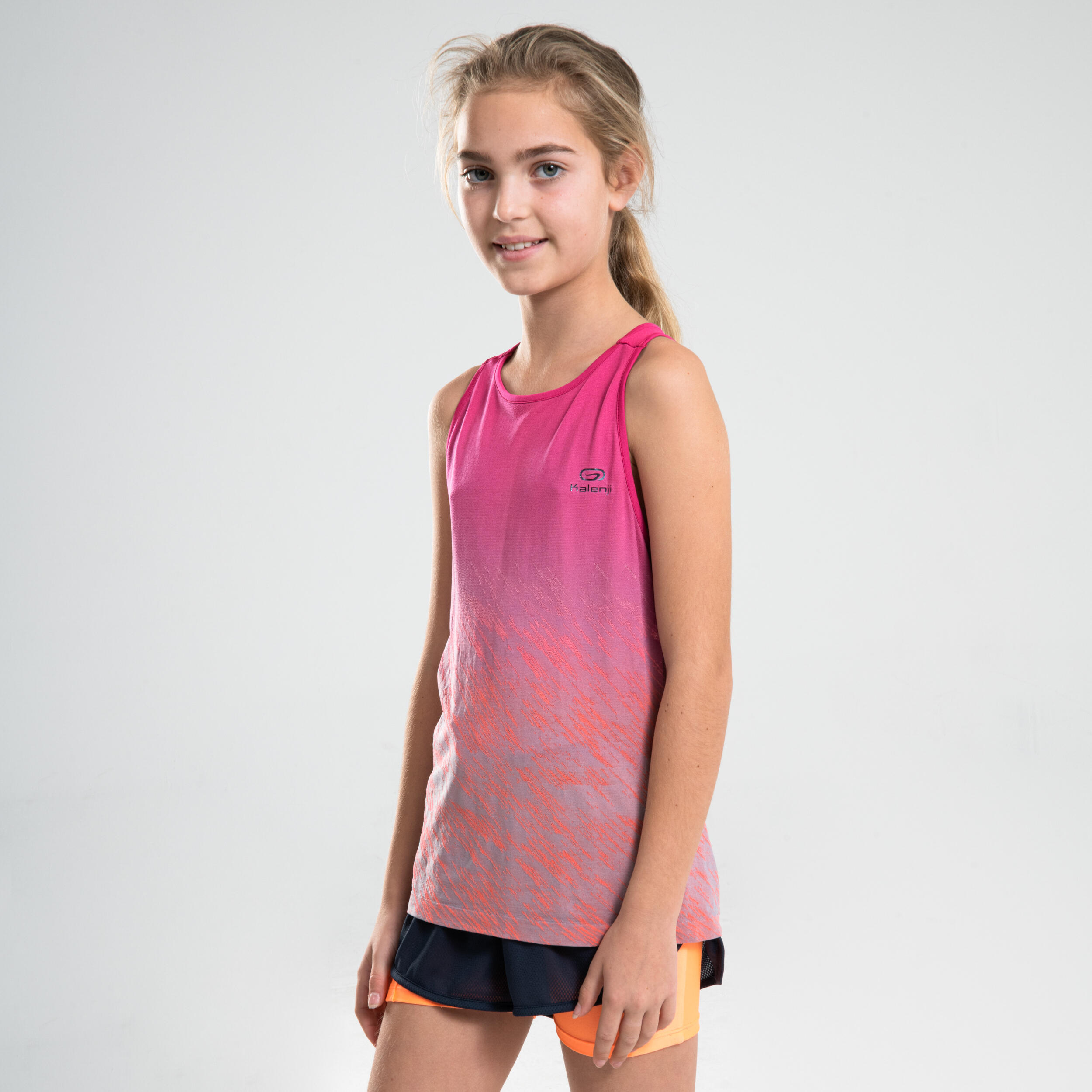 - 子供用 AT 500 ジョギング ノースリーブ Tシャツ ピンク