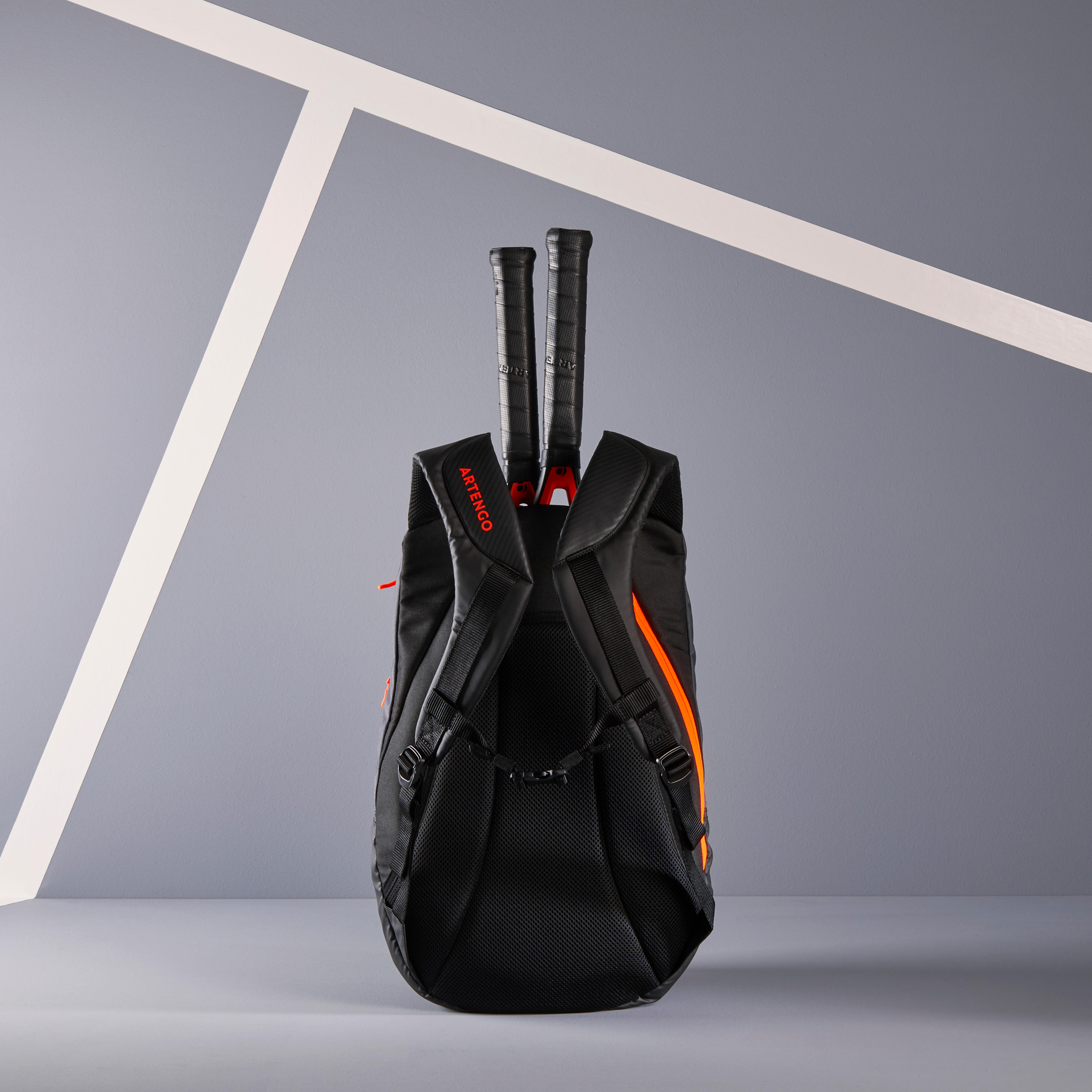 テニスの初心者や上級者は、ラケットや衣類を持ち運んで保護するためのバッグを探しています。この Artengo 500 BP バックパック モデルは、大小のラケットを 2 本収納でき、フル テニス キットを持ち運ぶのに適しています。
