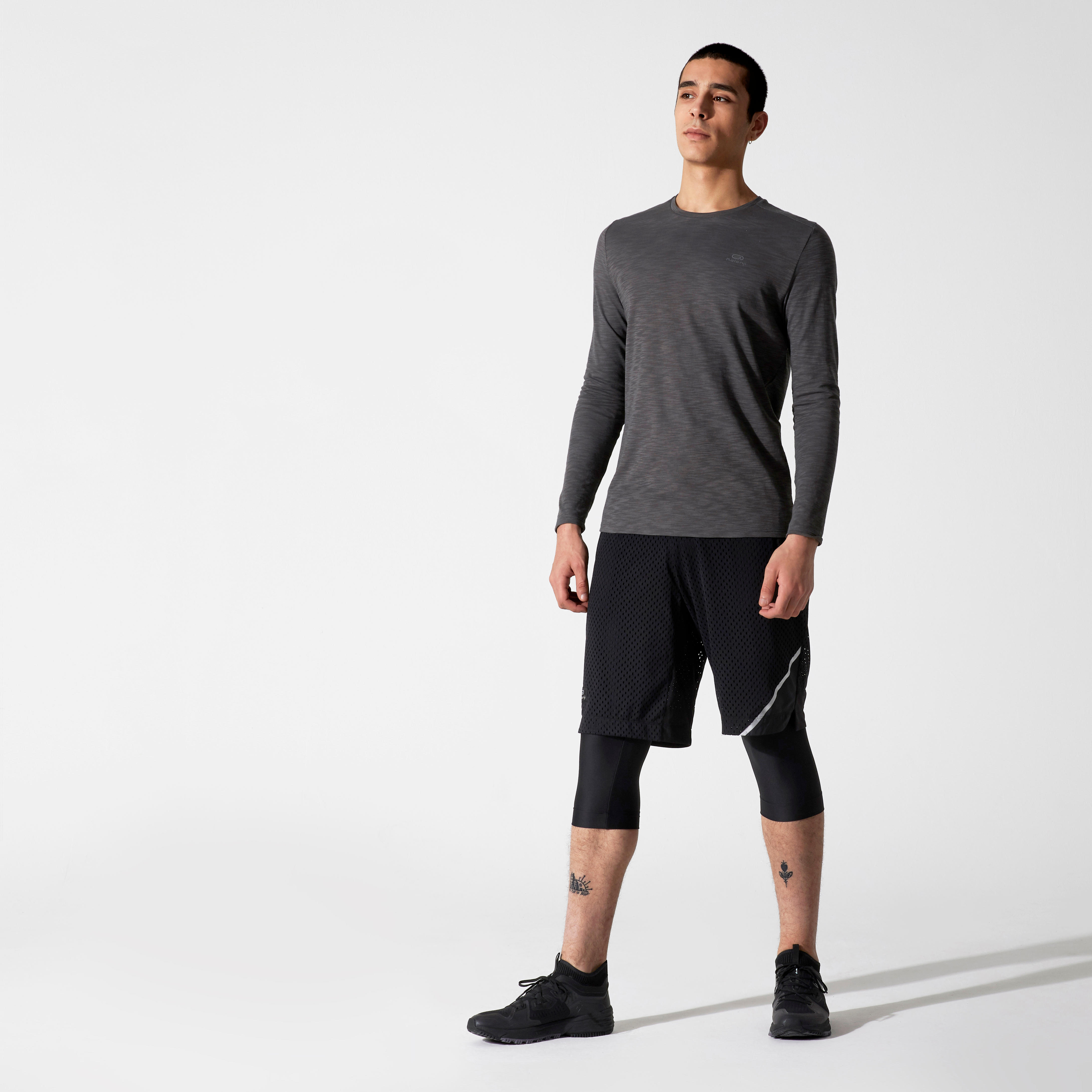 - Run Dry+ Breath 2 in 1 メンズ ランニング ショーツ - ブラック