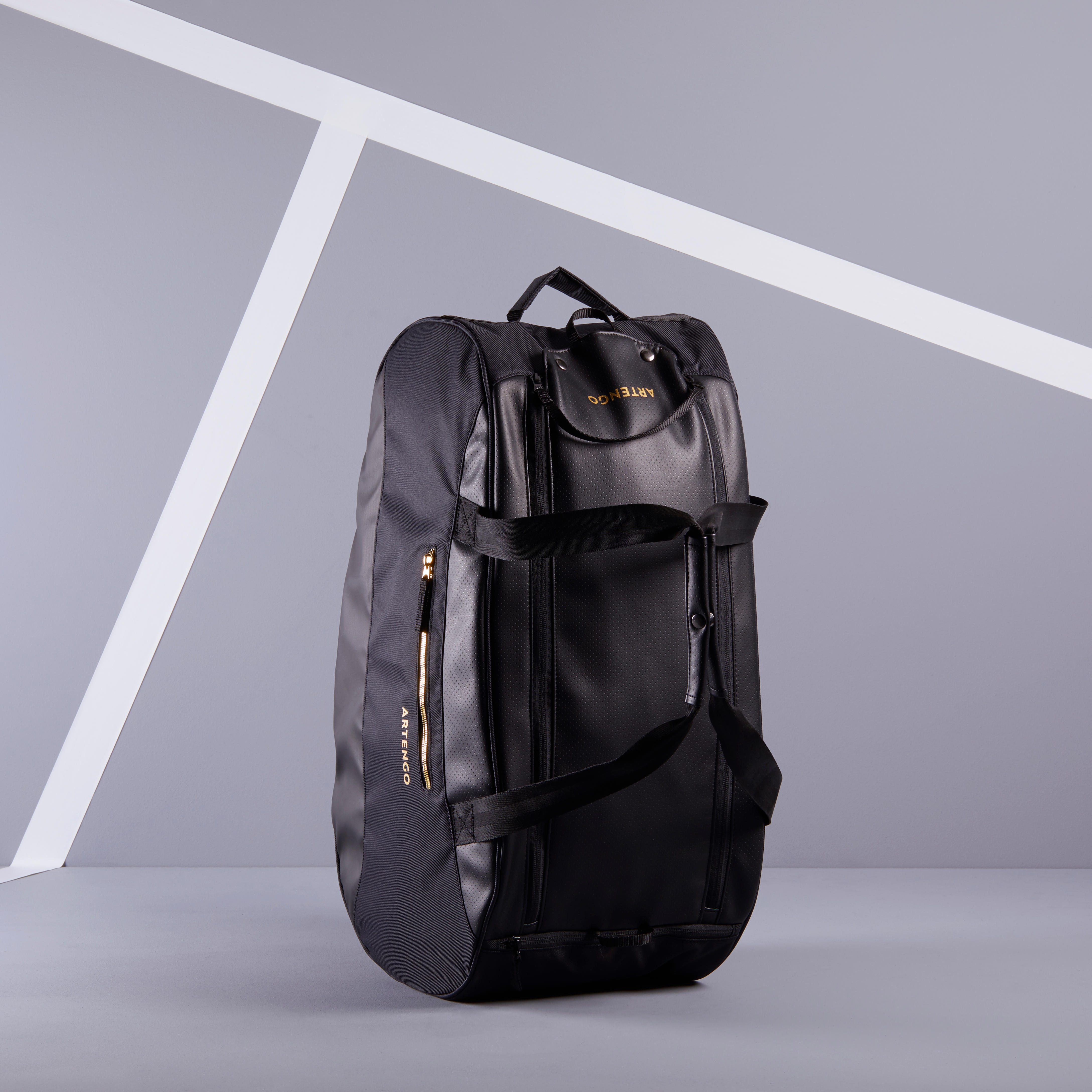 テニス ラケット スポーツ バッグは、ラケット 2 本と必需品を収納できます。ラケット ハンドルはバッグからわずかに突き出ています。Artengo スポーツ バッグを使用すると、ラケット スポーツに必要なすべてのギアを運ぶことができます。すべてを持ち運ぶのに最適なサイズです。