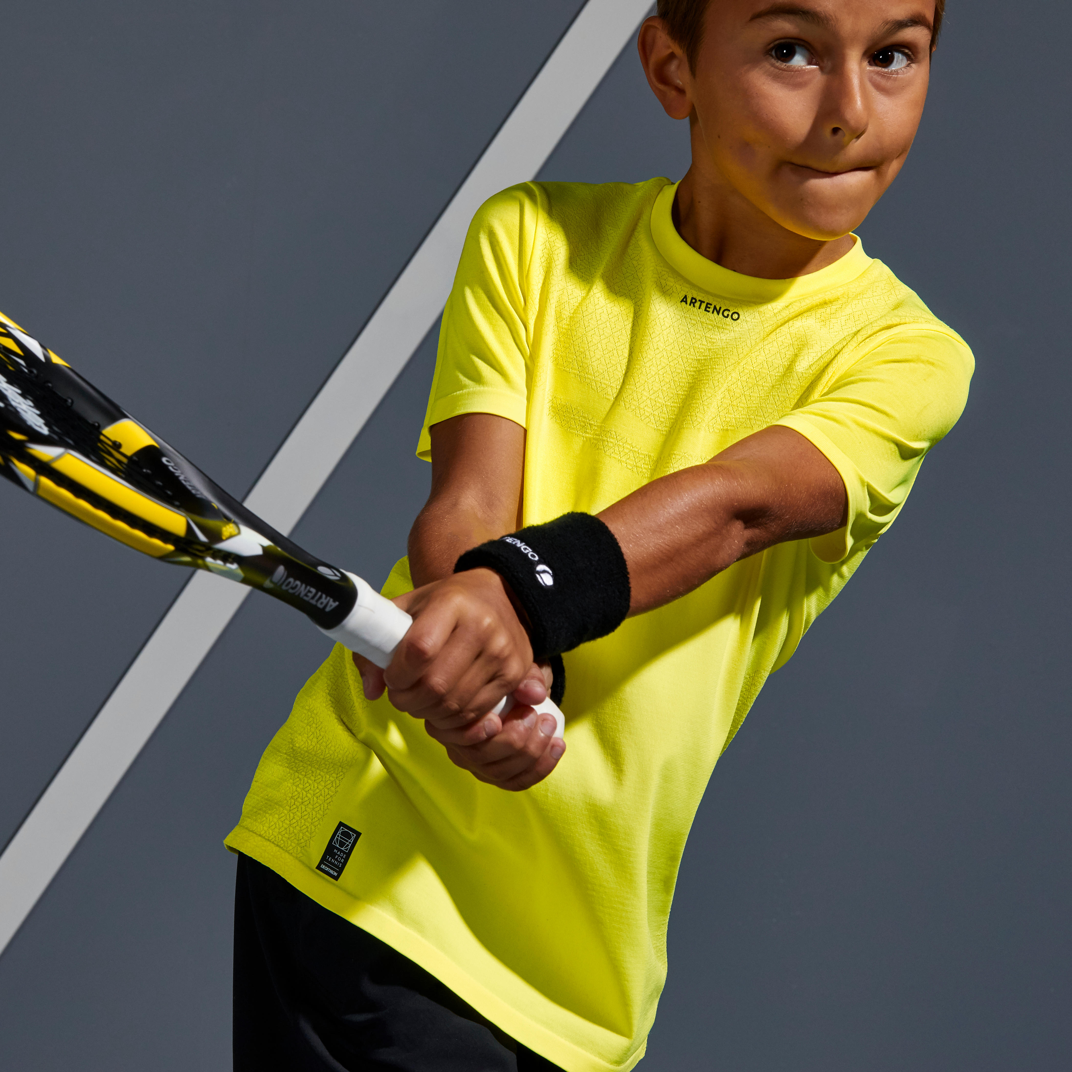 私たちのデザイン チームは、テニスをする子供たちのためにこの T シャツを開発しました。他のラケット スポーツにも適しています。この子供用 T シャツは非常に快適です。サイズはわずか 55 グラムです。10 歳です。生地は縫い目が少なく、デザイン汗を効果的に逃がします。