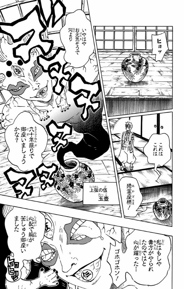 113年振りに上弦の鬼が欠け、憤る無惨は残りの上弦の鬼たちへ更なる命を下す!!一方、妓夫太郎と戦いで刀を刃毀れさせた炭治郎に鋼鐵塚は大激怒。新たな刀を求めて、炭治郎は鋼鐵塚のいる刀鍛冶の里へと来るが…!?