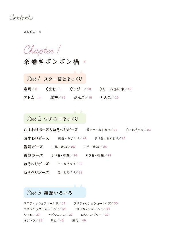 本書に掲載の35作品は全て作り方付き。 ポーズや模様も思いのままなので、ウチのコそっくりの猫人形が完成します。 スターキャットの作り方もご紹介します!