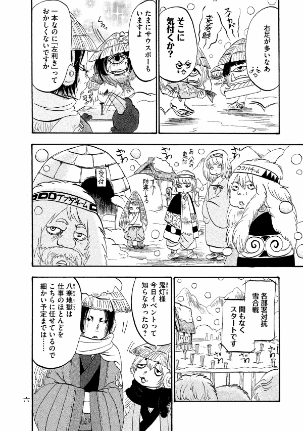 八巻だけに言えば八寒地獄のお話からスタート! 日本の地獄とギリシャの冥界って結構似てるよねえ話や、閻魔大王と秦広王によるうちの補佐官、大変だよ話、悪口言い合ってる鬼灯と白澤による悪口とは話、さらに柿助の俺話など、八巻だけどいつも全九話!