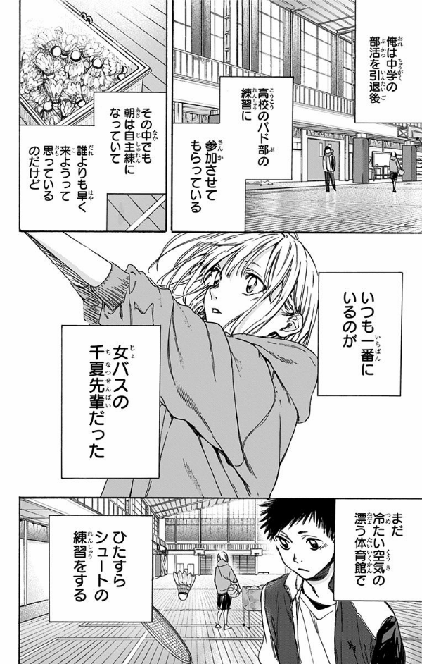 バドミントン部に所属する猪股大喜は、女子バスケ部の先輩・鹿野千夏に恋をしていた──。自主練を真摯に取り組む姿に心惹かれていたが、思いもよらぬ事実が発覚し…!? 道のりは遠く、想いは近く。青春ラブストーリー、はじまり。