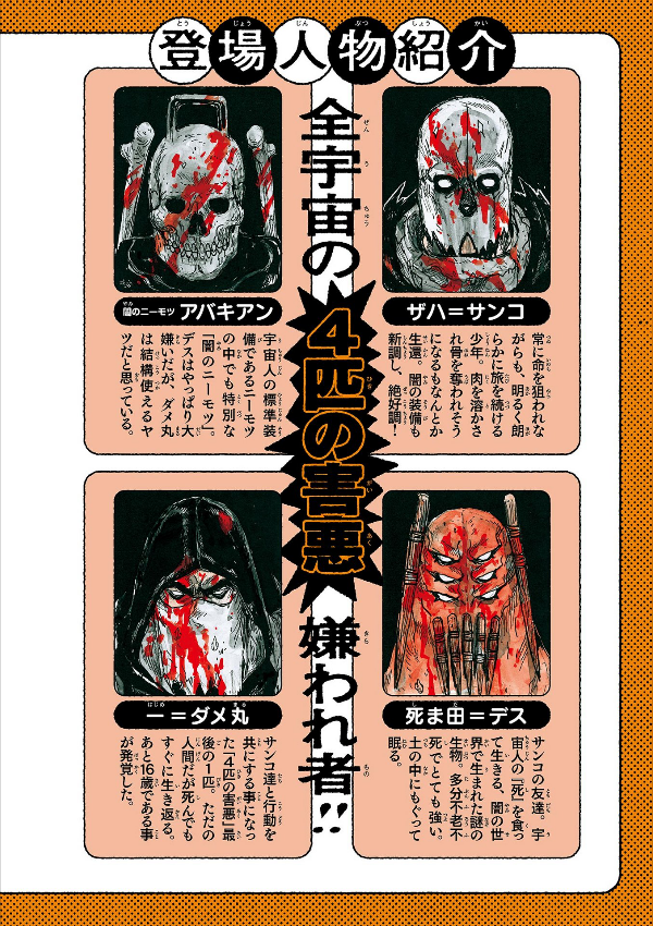 伝説の闇のニーモツ、アバキアン。無敵の死神、死ま田=デス。ただの人間、一=ダメ丸。宇宙船モージャ号にてさらになる旅へ!!