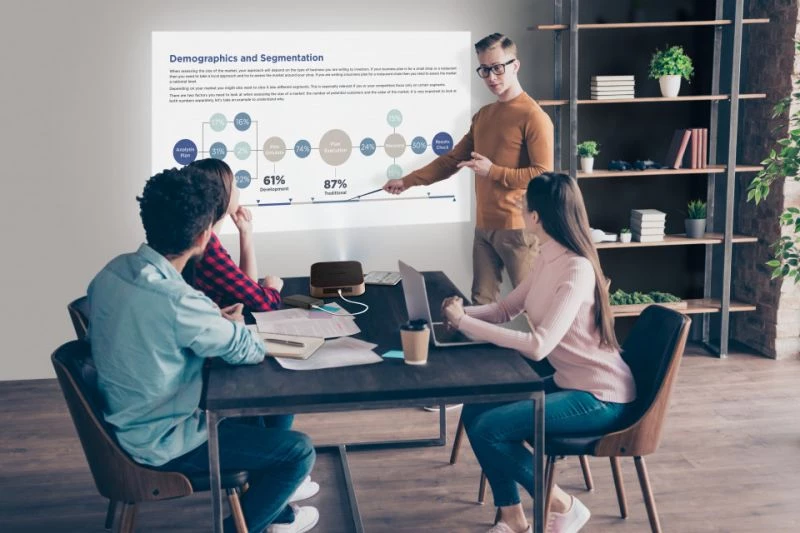それだけではありません。マルチアングル スマート スタンドを使用すると、わずか 2.6 メートル離れたところから最大 100 インチの投影角度を自由に設定でき、あらゆる空間で素晴らしいエンターテイメントを実現できます。