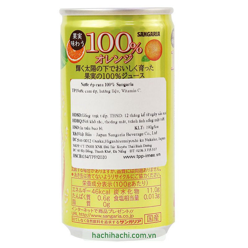 - 100%サンガリア オレンジジュース 190ml