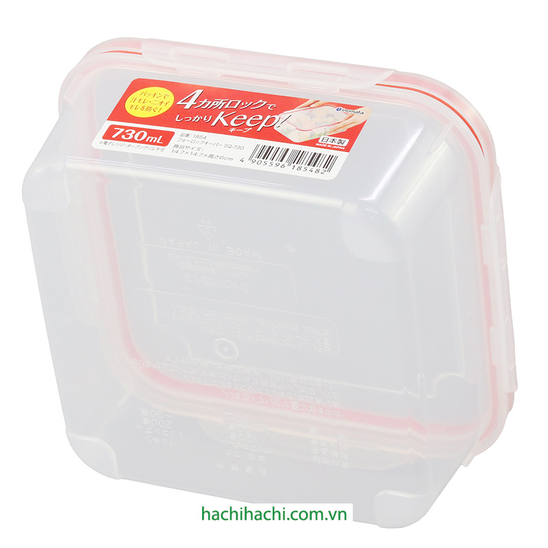 フタの四方ロック、水漏れを抑え、保存時の食品のニオイを抑えます。