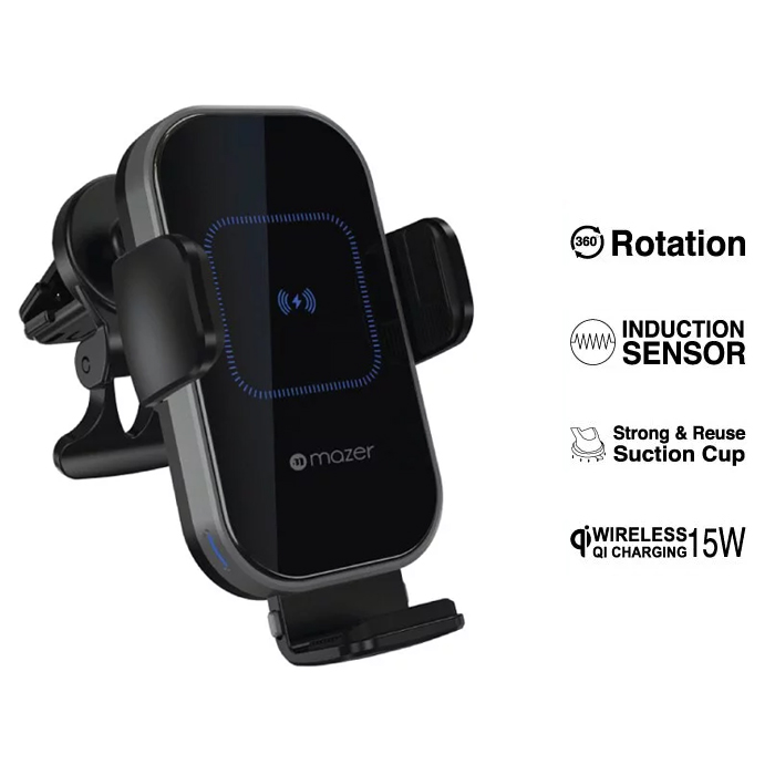 - Mazer AirDRIVE Qi ワイヤレス充電器とスマホクリップスタンド 15W