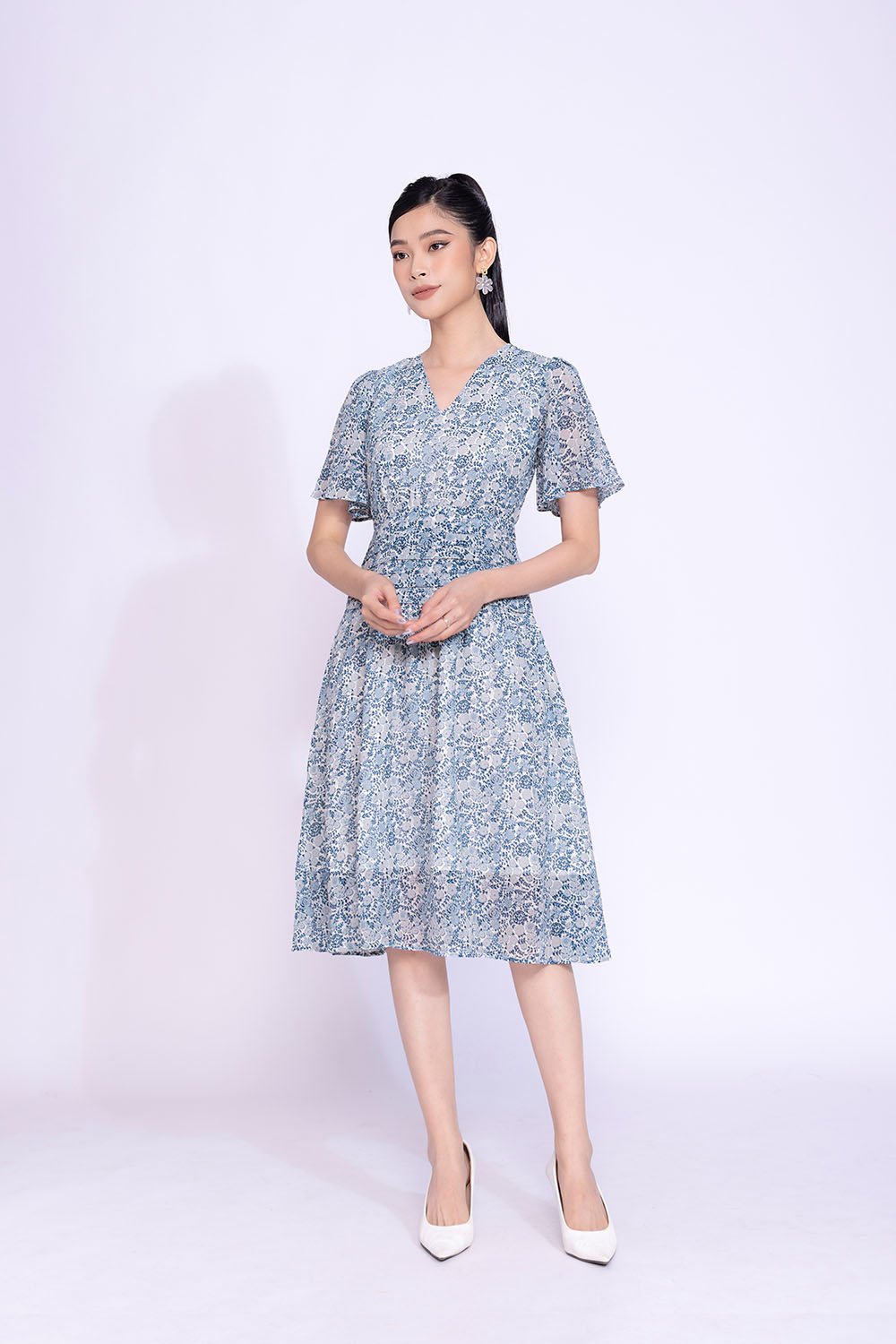 ロータスネックの花モチーフとウキクサをミックスしたAラインドレス