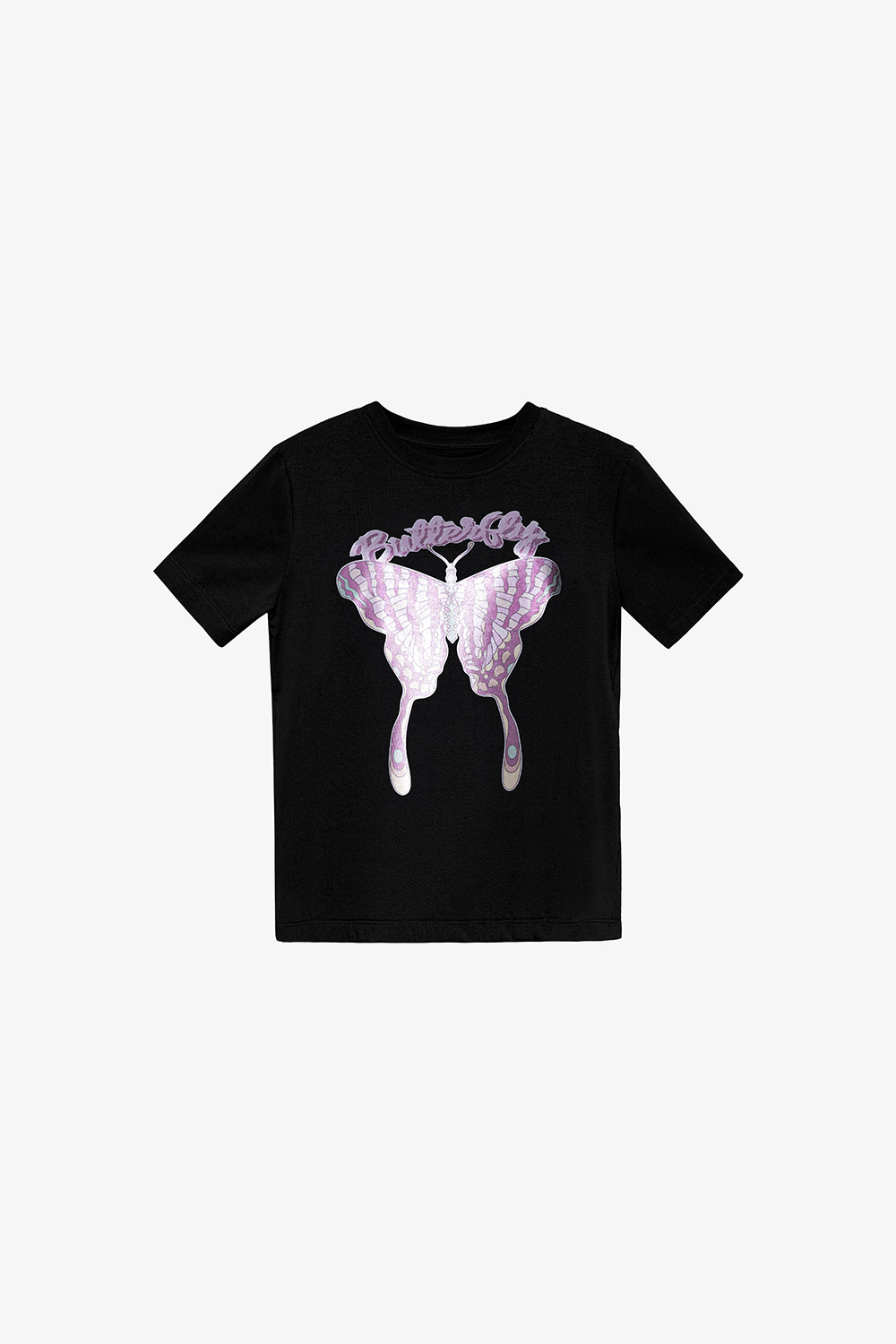 蝶柄のレディース黒Tシャツ