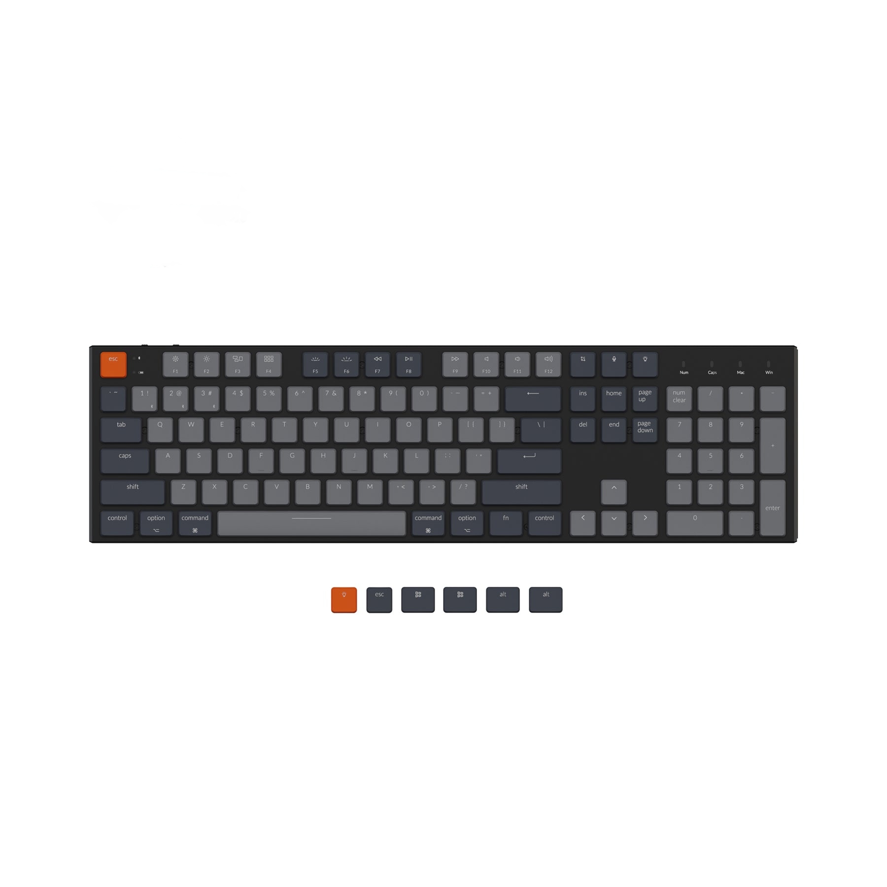フルサイズのミニマルな K5 メカニカル キーボードで優れたタイピング エクスペリエンスを実現する、ロー プロファイルのメカニカル スイッチとホットスワップ可能なオプティカル スイッチが付属しています。