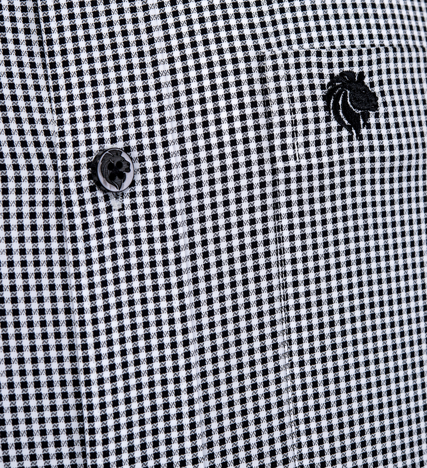 サン・シアロ レギュラーフォルムの長袖チェックシャツ 吸水性の良さと柔らかさが特徴の綿素材で、現代のオフィス環境にマッチ