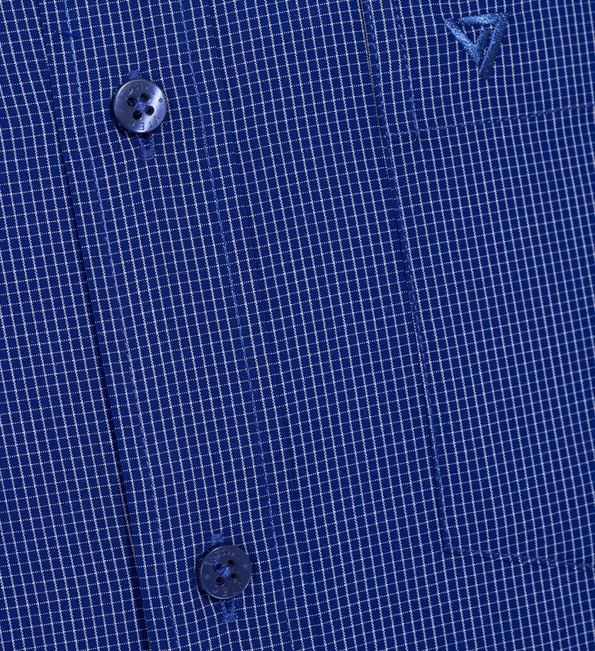 レギュラー フォームのベト ティエン半袖ストライプ シャツ、竹 - 紡績素材は、しわが少なく、アイロンがけしやすく、色落ちしにくく、吸収性に優れ、柔らかさと着心地が良く、現代のオフィス環境に適しています。