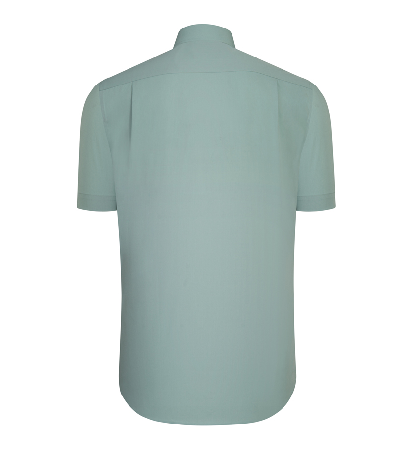 レギュラー フォームのベト ティエン半袖プレーン シャツ、ポリ - コットン素材は、吸収性が高く、柔らかく、しわが少なく、アイロンがけしやすく、現代のオフィス環境に適しています。