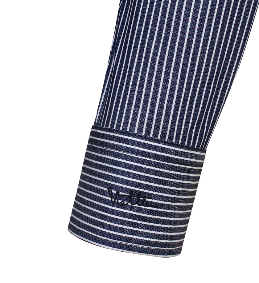 ベトティエンのレギュラー長袖ストライプシャツ、モダール - 紡績素材は、色堅牢度、柔らかさ、優れた吸収性、しわが少ない、アイロンがけが簡単、毛羽立ちや固まりがないなどの特徴があり、作業環境に適しています。現代のオフィス。